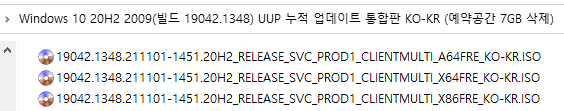 2) 예약공간 7GB 삭제 패치가 적용된 버전 (예약공간 7GB 삭제 패치 + 21H2의 탐색기 아이콘 변경 적용.ㅎ 권장)