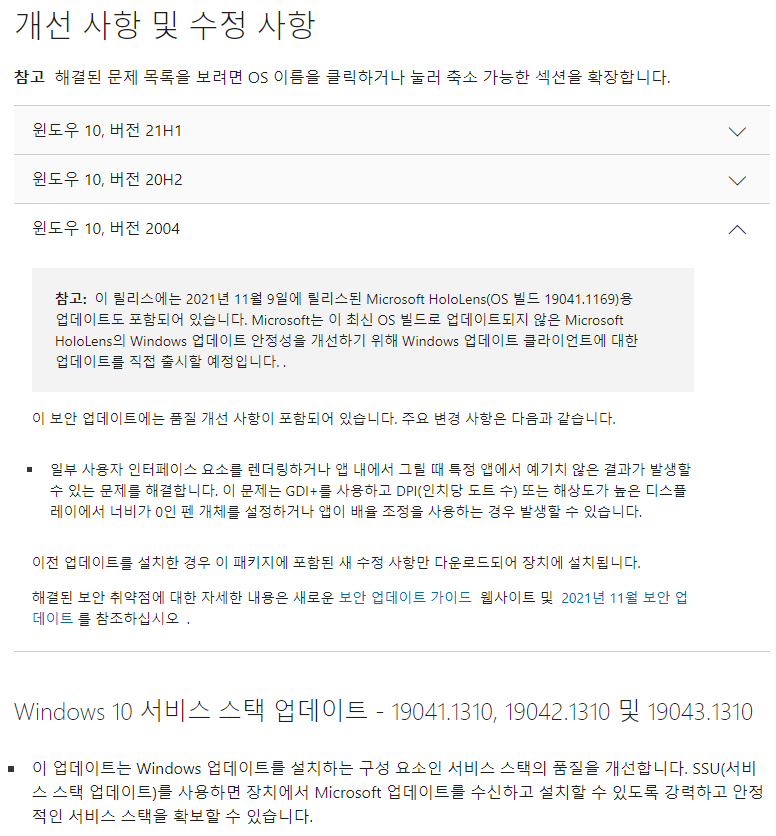 ssu-19041.1310 = 서비스 스택 업데이트 (Servicing Stack Update : SSU) (누적업데이트 설치 준비 파일) (2021-11-05)