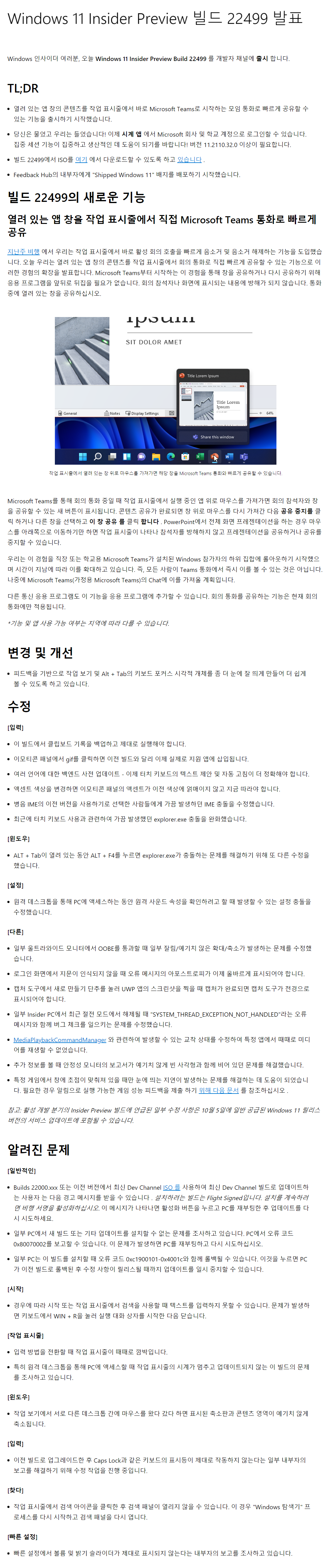 오늘 Windows 11, 22499.1000 빌드가 배포되었습니다.
