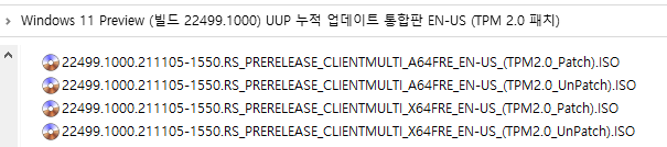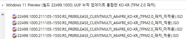 [TPM 2.0 미적용 ISO 파일 직접 만들기] (10~30분 이상 소요됨) : 시간이 많이 걸리기 때문에 위의 토렌트로 받으시길 바랍니다.ㅠ