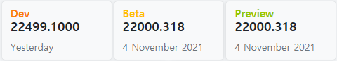 ○ 미리보기 채널 릴리스 [Release Preview] = Windows 11 : 빌드 22000.318 (= 참가자 빌드)