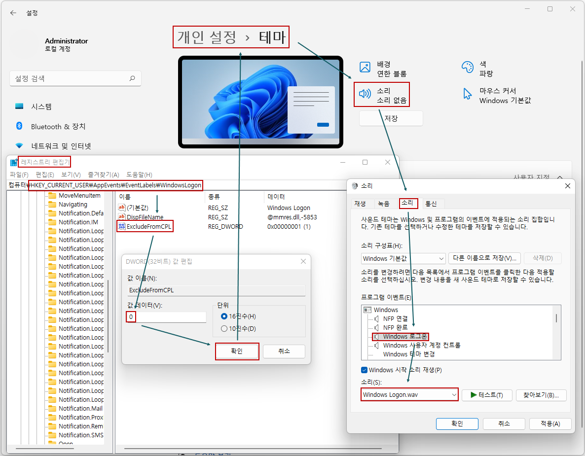레지스트리 변경은 위 레지파일을 사용하시면 됩니다.