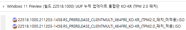 [TPM 2.0 미적용 ISO 파일 직접 만들기] (10~30분 이상 소요됨) : 시간이 많이 걸리기 때문에 위의 토렌트로 받으시길 바랍니다.ㅠ