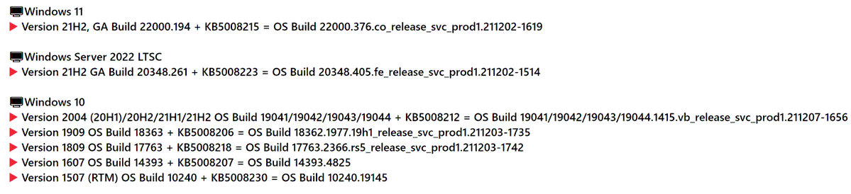 3) RS5, 버전 1809 (빌드 17763) & LTSC 2019 & 서버 2019 : 2021-12-14