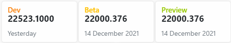 ○ 개발자 채널 [Dev] = Windows 11 : 빌드 22523.1000 (= 참가자 빌드)