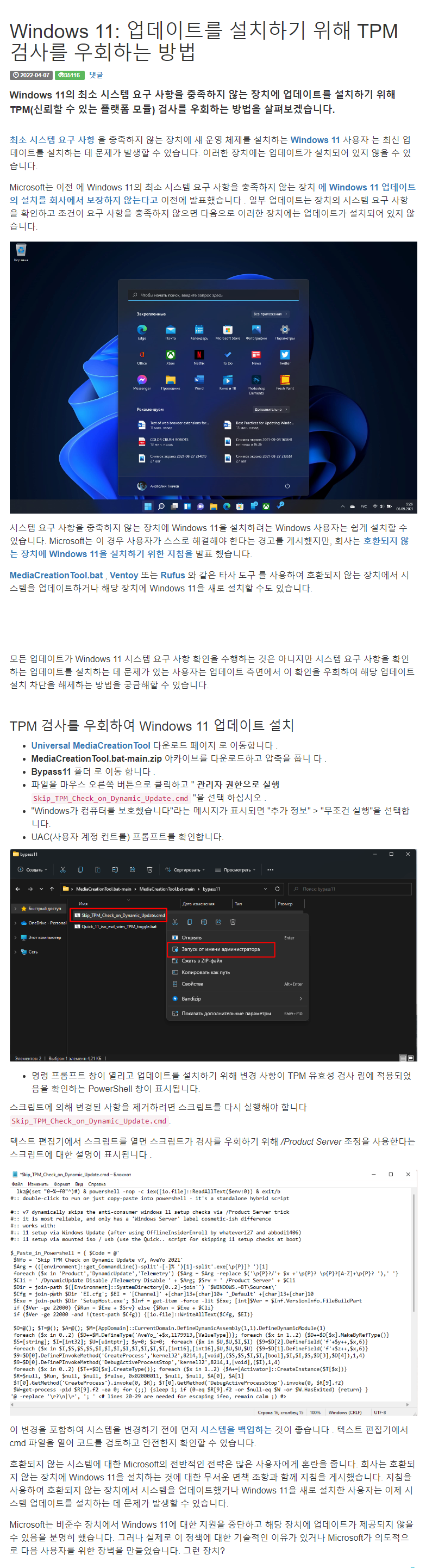 Skip_TPM_Check_on_Dynamic_Update.cmd 파일을 실행해주면 우회 패치 됩니다.