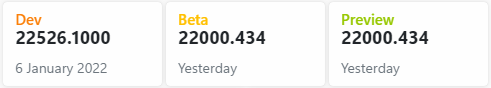 ○ 개발자 채널 [Dev] = Windows 11 : 빌드 22543.1000 (= 참가자 빌드)