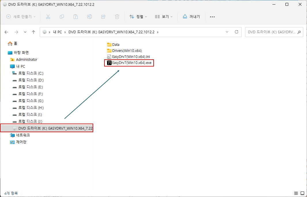 EasyDrv7(Win10.x64).exe 프로그램을 실행시킵니다.