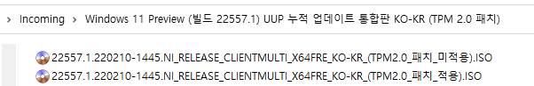 TPM 2.0 패치 적용 : TPM 2.0 (Windows 11 설치 불가) 패치 + 7GB 예약 공간 삭제 + 사용자 폴더 아이콘 수정