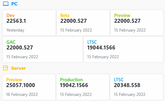 Windows 11 빌드 22557(Dev)부터 Microsoft가 내부자 빌드를 릴리스하는 분기 이름이 코드명 "Nickel"(Ni)에서 NI_RELEASE 로 변경되었습니다.