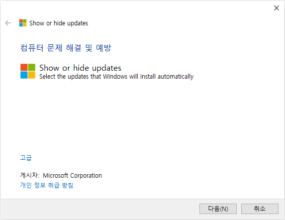 3. wushowhide.diagcab 프로그램으로 드라이버 업데이트 숨기는 방법