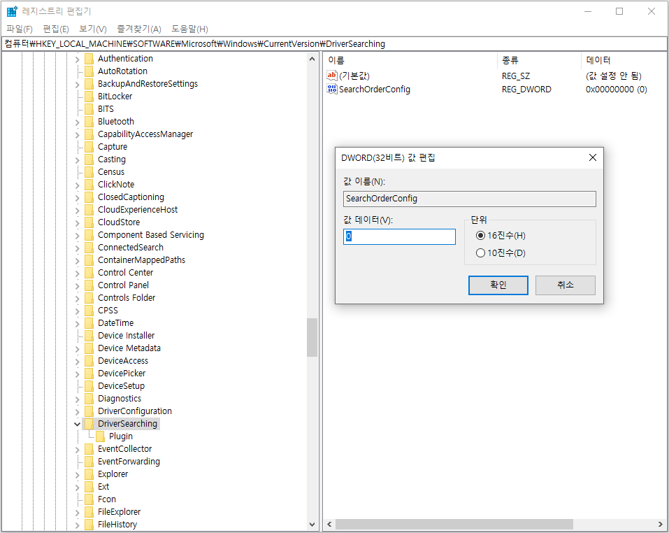 1 = 드라이버 업데이트를 자동으로 다운로드하도록 설정됩니다.