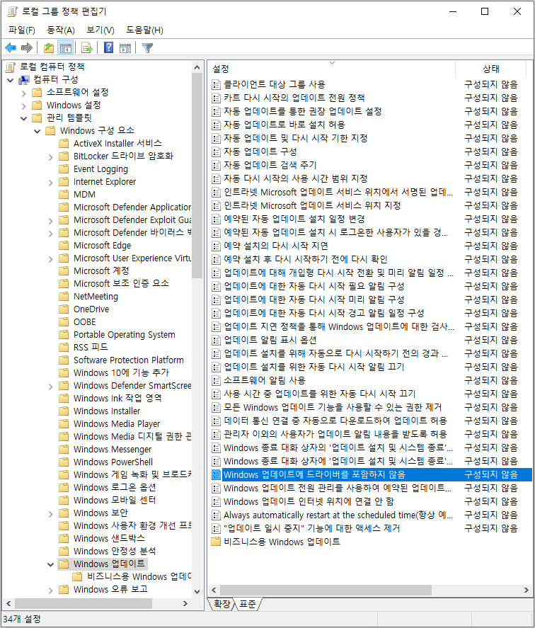이런 경우는 자동업데이트에서 드라이버 자동 업데이트를 끄두면 좋습니다.