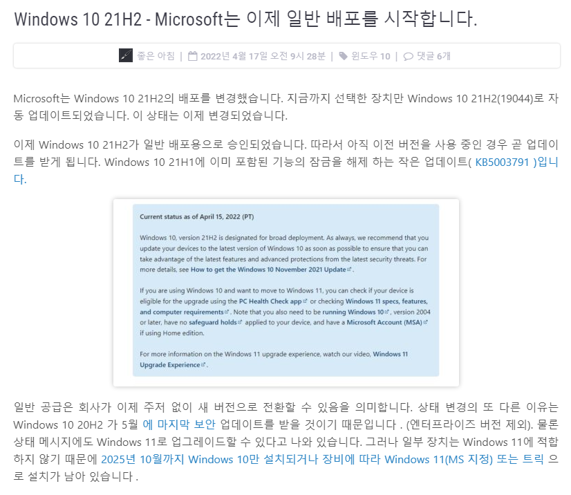 | Windows 10에서 IE11 사용시 Windows 11로 업그레이드 차단 버그 해결됨 (23) | 2022.04.02 |