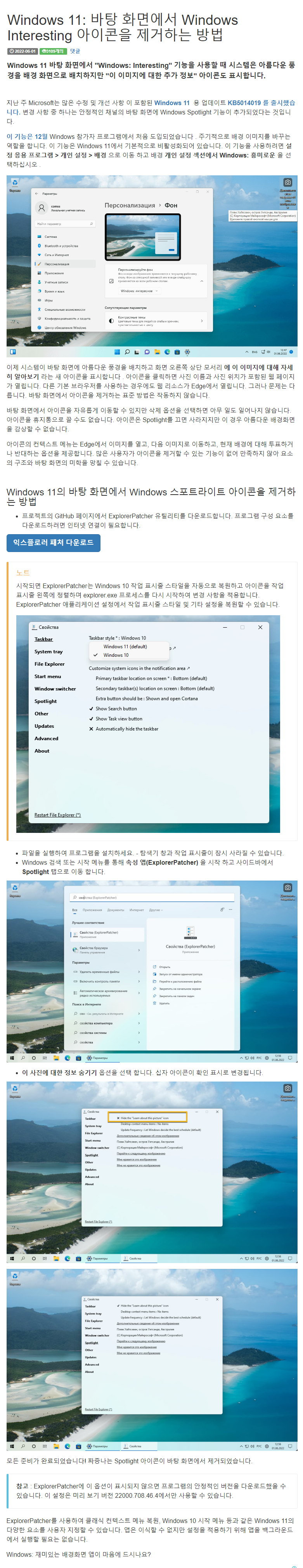 Windows interesting 아이콘을 제거할 때만 사용하세요.