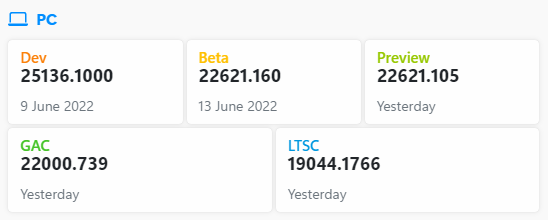 ○ 개발자 채널 [Dev] = Windows 11 : 빌드 25136.1000 (= 참가자 빌드)