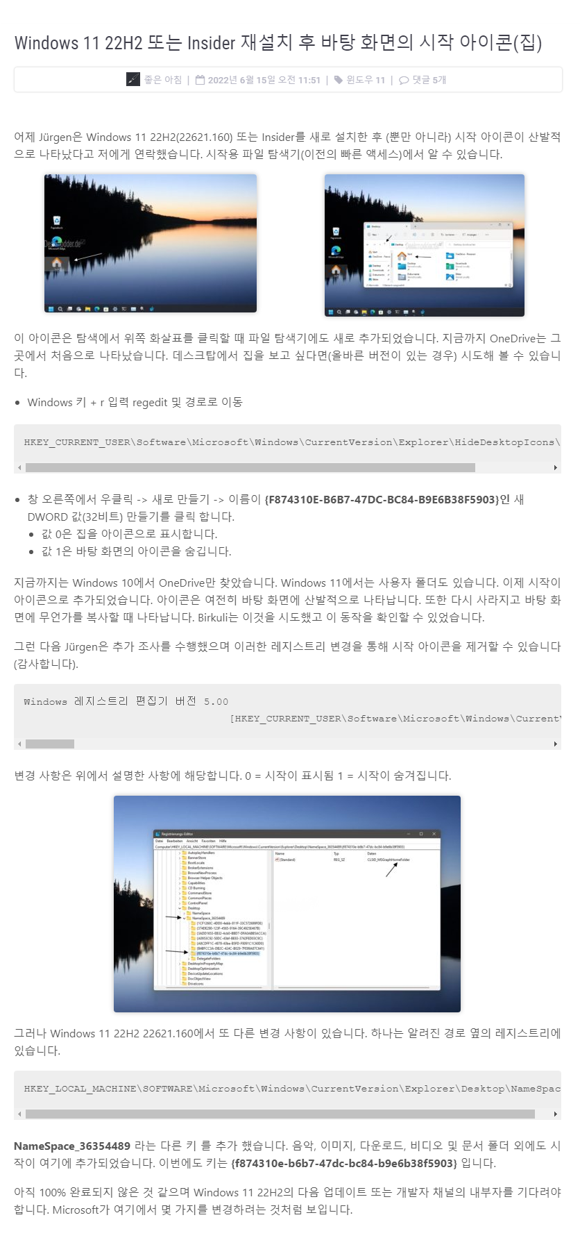 | Windows 11, 22H2 RTM 빌드 22621.160 에서 [탐색기 탭]을 활성화하는 방법 (31) | 2022.06.14 |