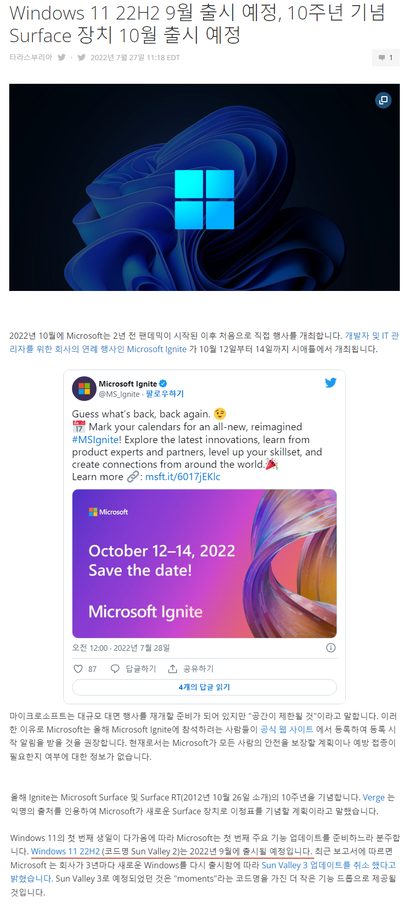 | Windows 11, 22H2는 9월 20일에 정식 출시될 예정 ■ (22) | 2022.08.17 |