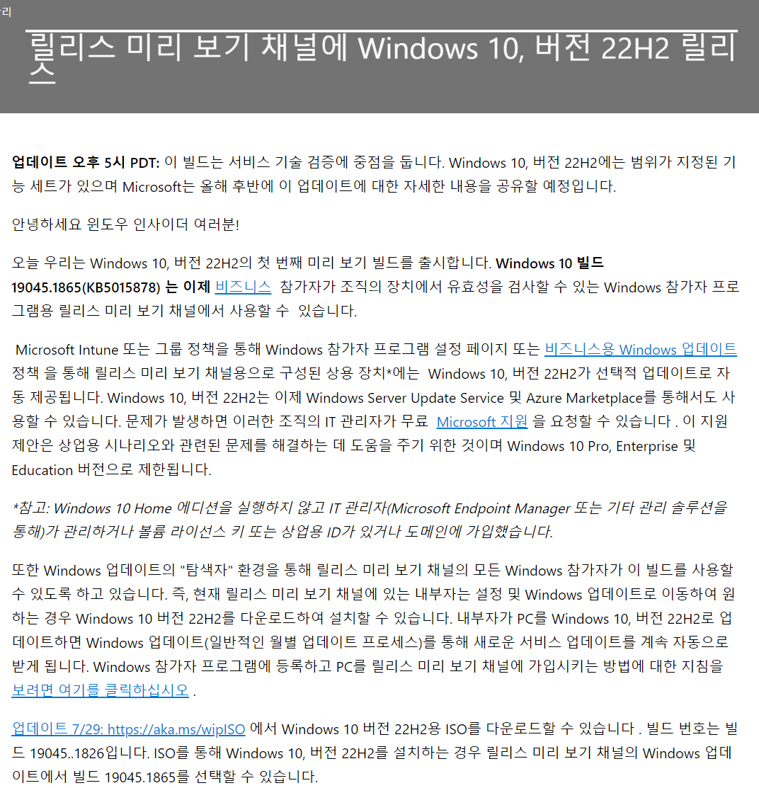 따라서, Windows 10, 22H2은 정식 출시된 거나 마찬가지입니다.