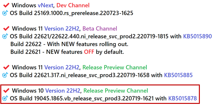 19045.1865 → 19045.xxxx → ..... → 19045.xxxx (정식빌드) → 19045.xxxx → 19045.xxxx → .....