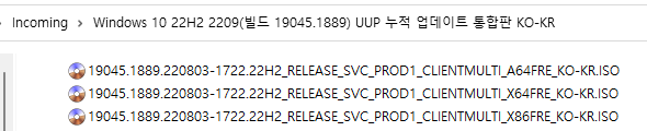 아래 파일은 UUP dump에서 만든 스크립트를 이용해서 MS에서 배포하는 파일(ESD, cab파일)로 만든 순수 ISO 파일입니다.
