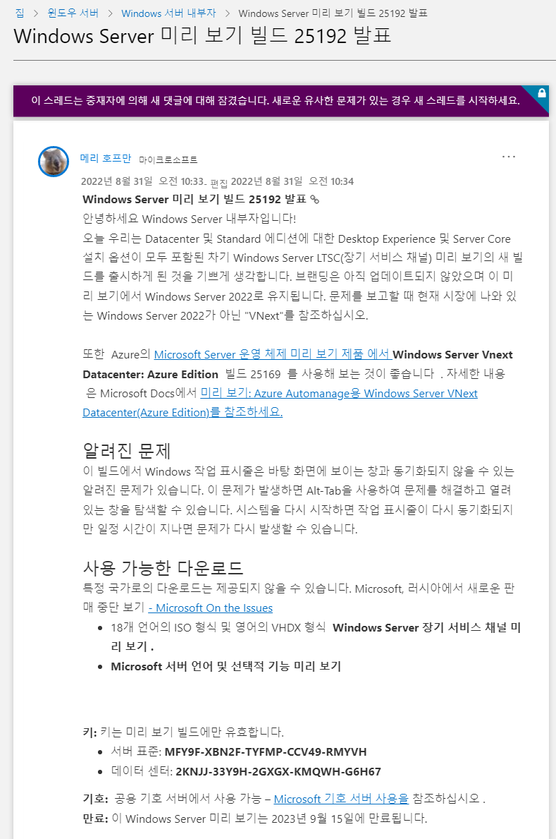서버 버전 Insider Preview 빌드 25192 배포를 시작했네요...