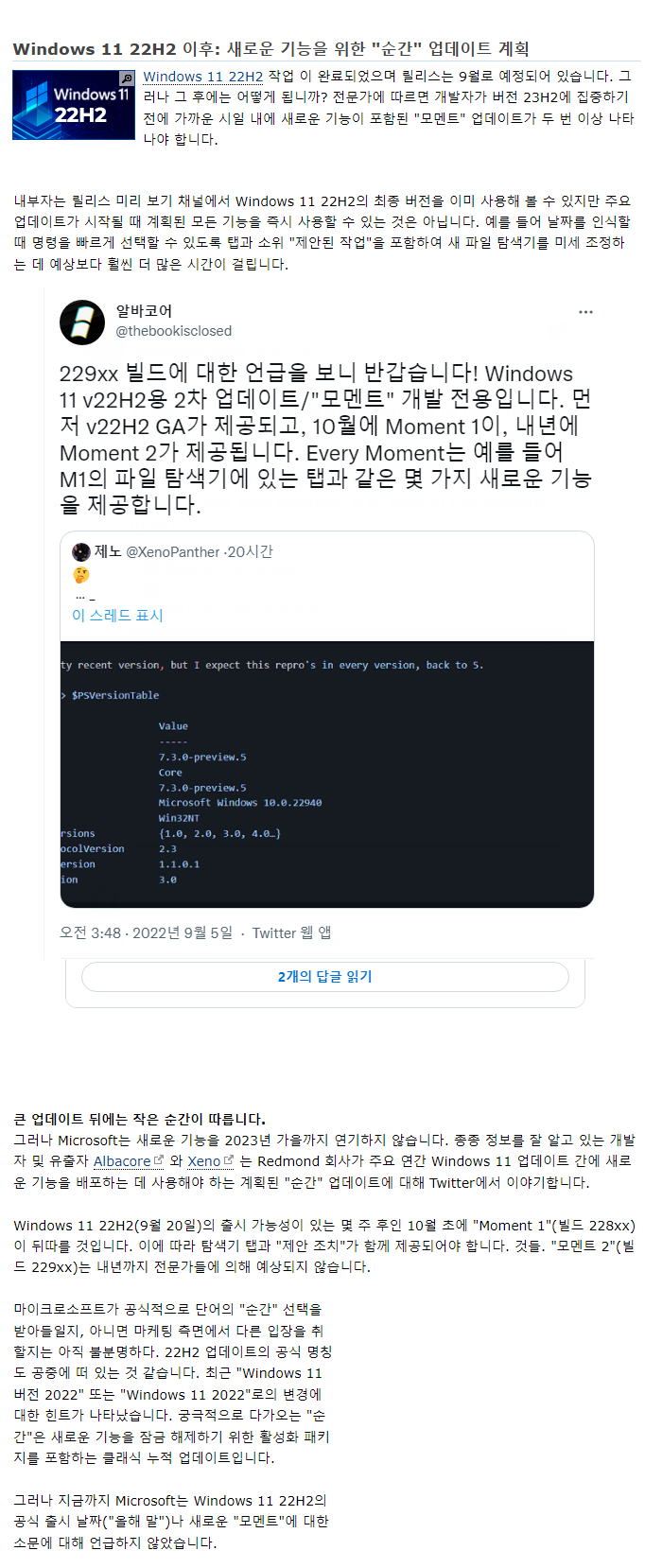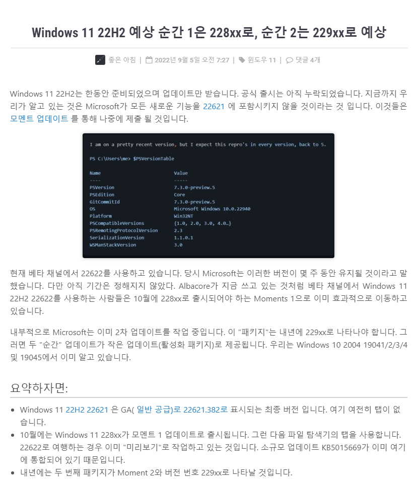 | Windows 11 22H2 정식 버전은 22621.382가 될 가능성 있음 (6) | 2022.09.05 |