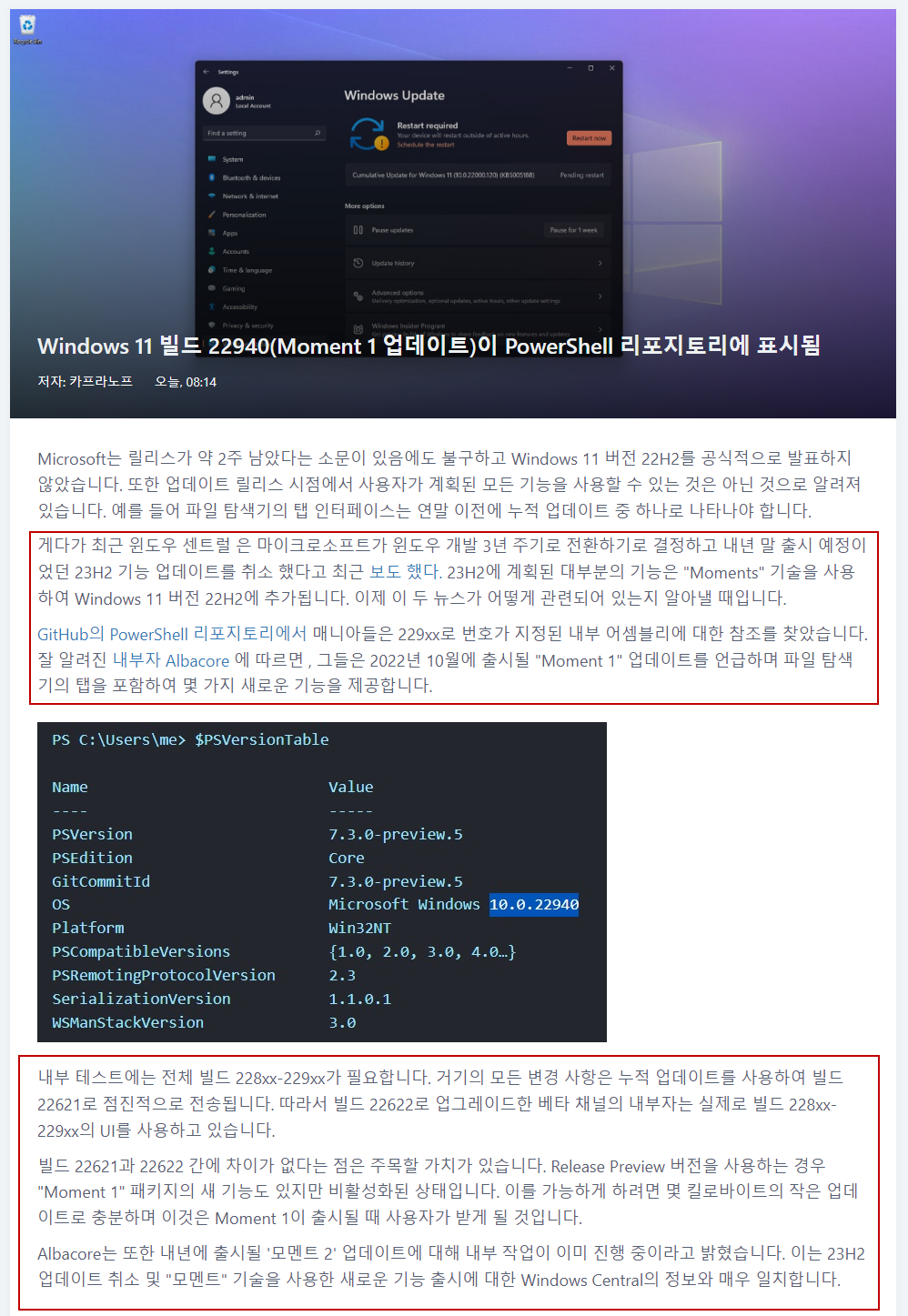 - Moment2는 내년에 두 번째 주요 업데이트가 될 것이며 현재 Insider Beta에서 테스트 중입니다. (여기서는 22623입니다)