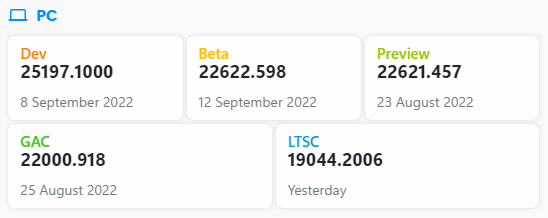 ○ 개발자 채널 [Dev] = Windows 11 : 빌드 25197.1000 (= 참가자 빌드)