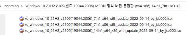 ※ Windows 10, 21H2, 버전 2109 [빌드 19044.2006] MSDN (x64-x86) 14in1 / 7in1 ※