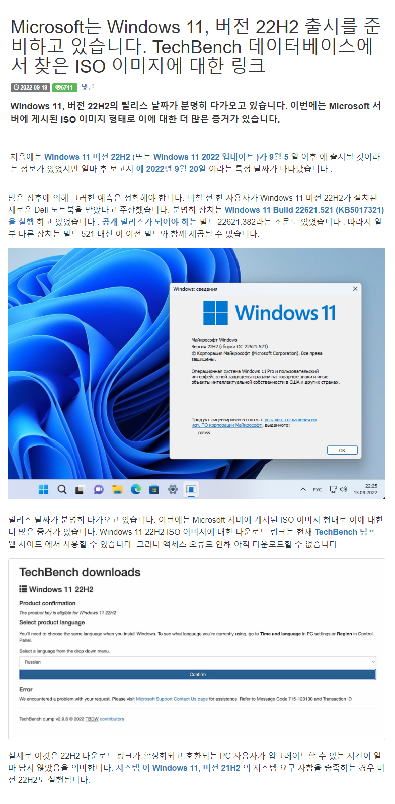 | Windows 11, 22H2는 22621.382 또는 22621.521 빌드가 될 가능성 있음 (8) | 2022.09.19 |