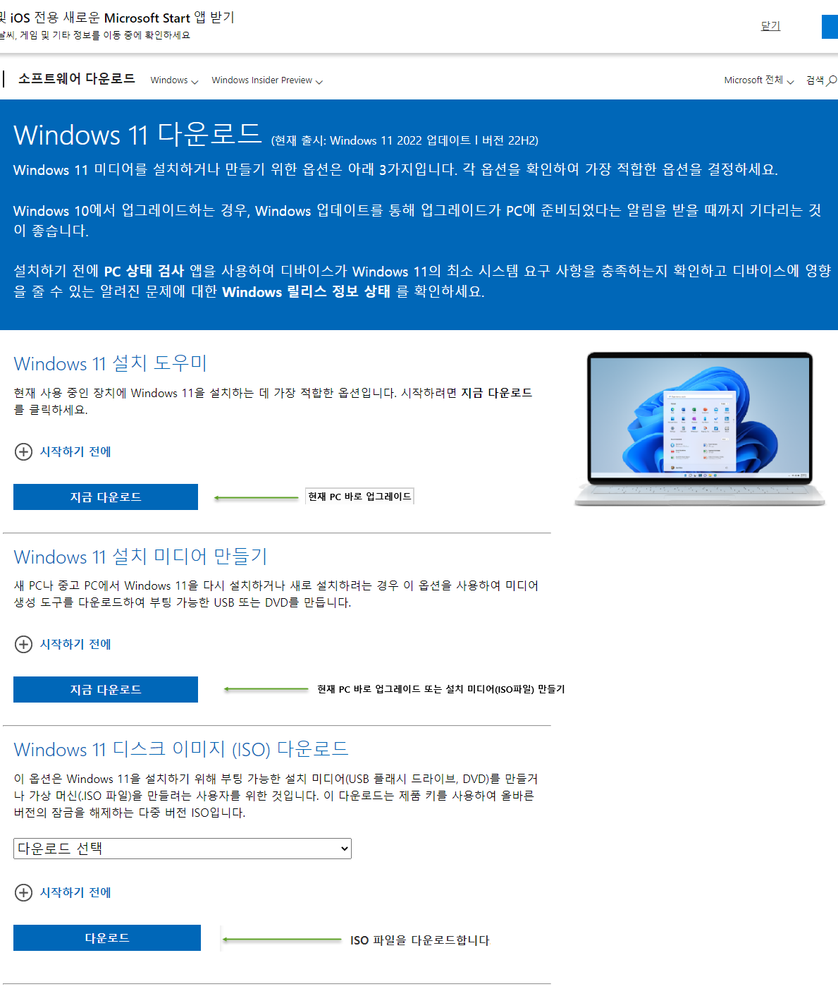 MCT(Media Creation Tool)가 이제 Windows 11 22621.525(Win11_22H2_Korean_x64v1.iso)를 다운로드하고 있습니다.