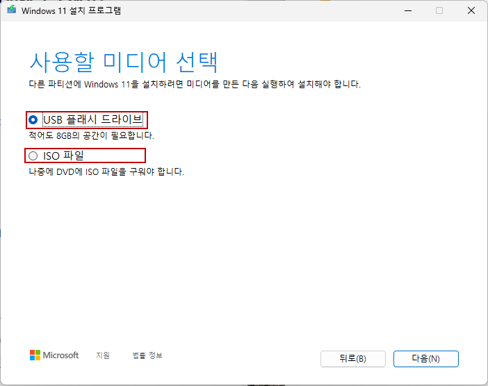 2. Windows 11 설치 미디어 만들기 (비권장 : 아래 3번에서 ISO 파일 받으세요)