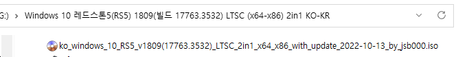 ※ Windows 10, 레드스톤5(RS5) 버전 1809 LTSC (17763.1) + 누적 업데이트 파일(KB5018419) : 17763.x →