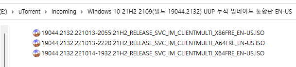 아래 파일은 UUP dump에서 만든 스크립트를 이용해서 MS에서 배포하는 파일(ESD, cab파일)로 만든 순수 ISO 파일입니다.