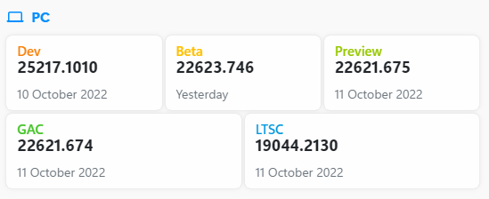 22623 빌드는 두번째 모멘트 업데이트(Moment Update 2)입니다. 내년에 제공됩니다.