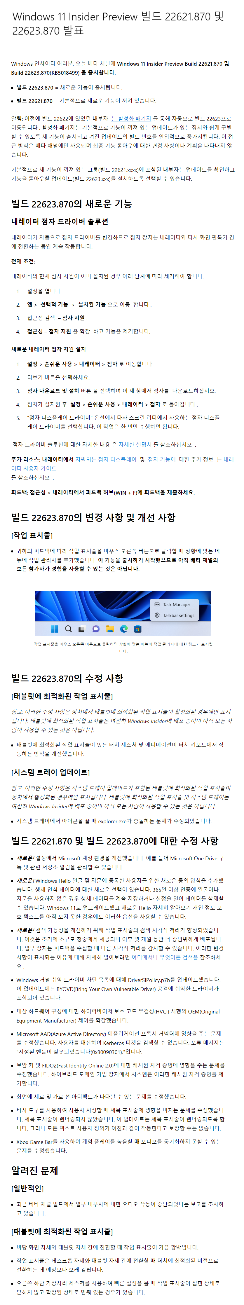 이 업데이트는 인사이드 참가자들에게 테스트 및 피드백 목적으로 배포되는 빌드입니다.