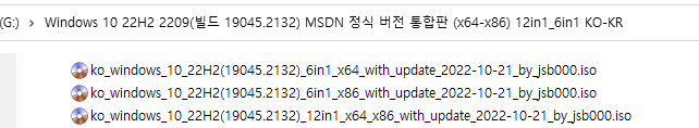 ※ Windows 10, 22H2, 버전 2209 [빌드 19045.2132] MSDN (x64-x86) 12in1 / 6in1 ※