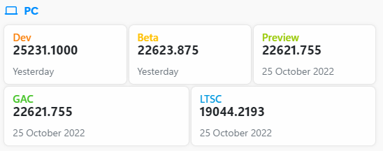 - 미리보기 채널 : 일반 사용자가 곧 사용할 수 있게 될 기능을 소개하도록 설계. 곧 Windows 사용자에게 제공될 테스트