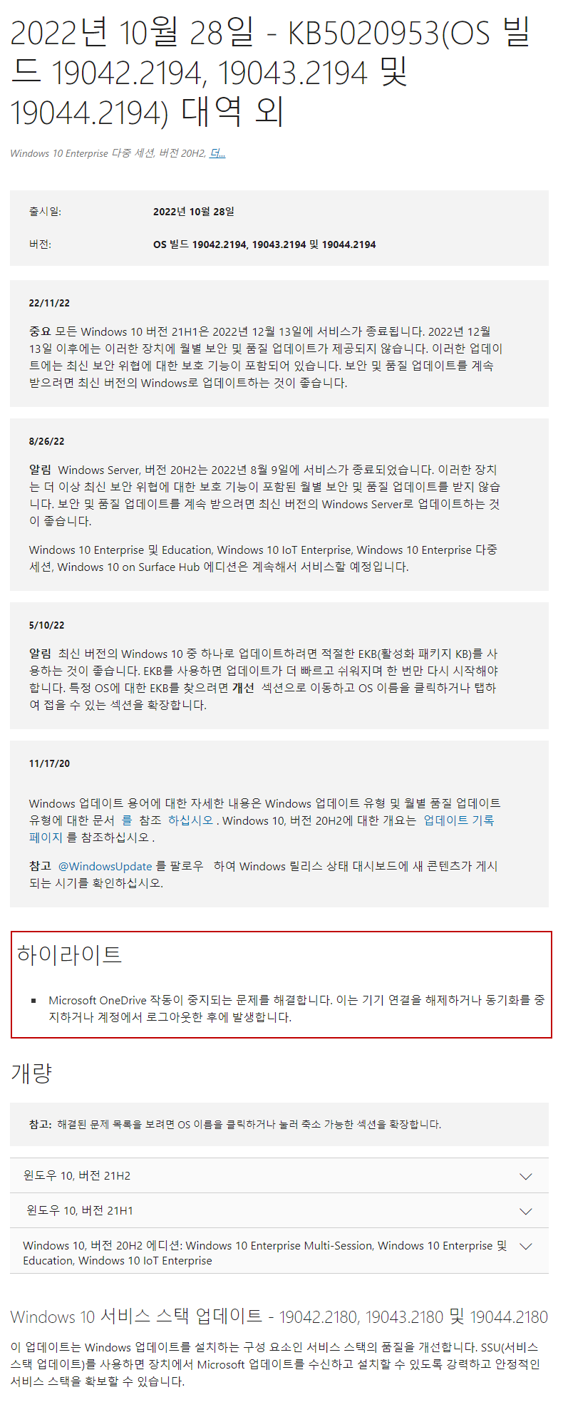 KB5020953 = 누적 업데이트(19045.2194) (Cumulative update : CCU) (2022-10-29)