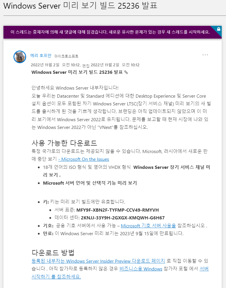 | Windows Server vNext Insider Preview 빌드 25246 배포됨 [배포 종료] (3) | 2022.11.17 |