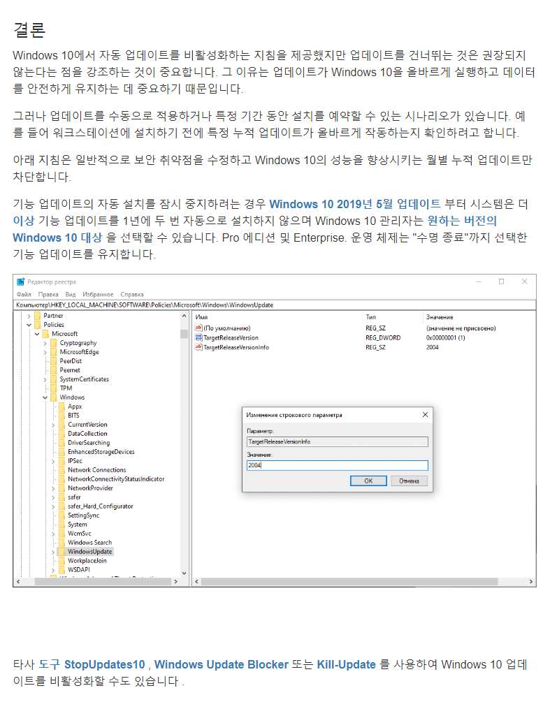 Windows 10 자동 업데이트 비활성화.reg