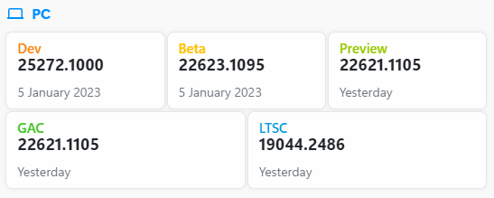 ○ 베타 채널 [Beta] = Windows 11 : 빌드 22621.1095 / 22623.1095 (= 참가자 빌드)