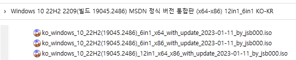 ※ Windows 10, 22H2, 버전 2209 [빌드 19045.2486] MSDN (x64-x86) 12in1 / 6in1 ※