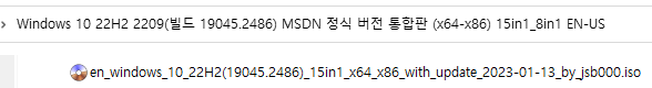 ※ Windows 10, 22H2, 버전 2209 [빌드 19045.2486] MSDN (x64-x86) 15in1 ※