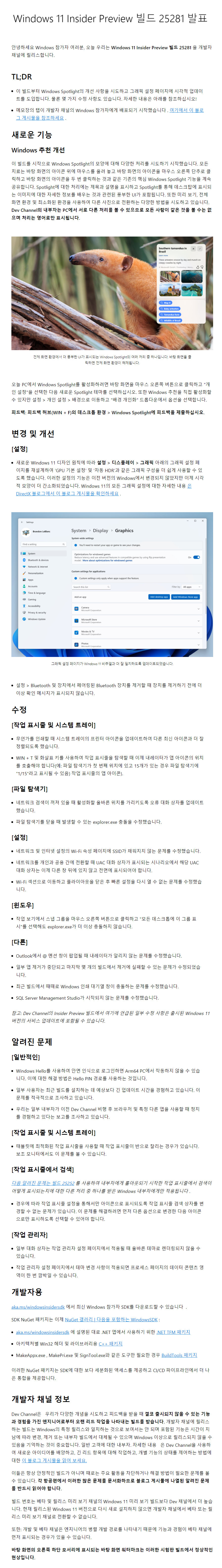 Windows 11, 25281.1000 빌드가 배포되었습니다.