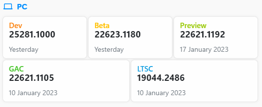 22623.xxx은 인사이드 베타 참자가에게 테스트되는 Windows 11의 프리뷰 빌드입니다. (새로운 기능이 추가되어 있음)