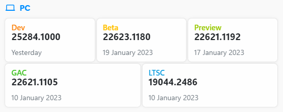 22623.xxx은 인사이드 베타 참자가에게 테스트되는 Windows 11의 프리뷰 빌드입니다. (새로운 기능이 추가되어 있음)