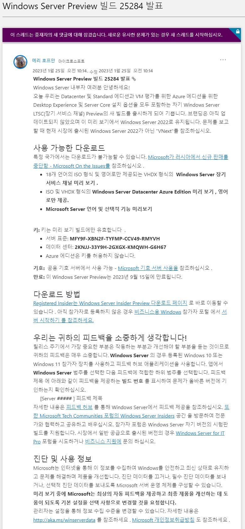 | Windows Server vNext Insider Preview 빌드 25295 배포됨 [배포 종료] (4) | 2023.02.10 |