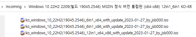 ※ Windows 10, 22H2, 버전 2209 [빌드 19045.2546] MSDN (x64-x86) 12in1 / 6in1 ※